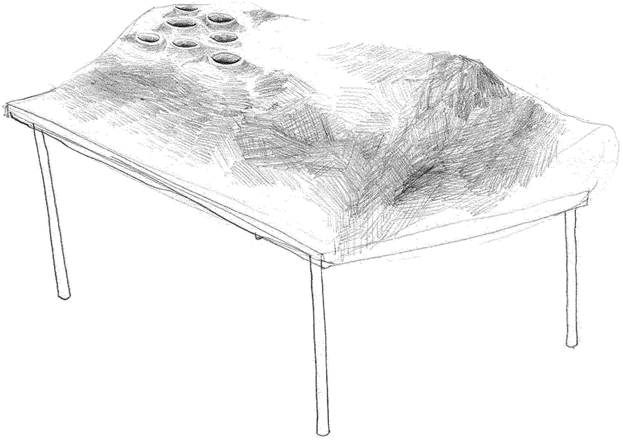 Vues d’installations d’un buffet végétarien fabriqué par Jeanne Etienne, Kim Détraux et Carolina Fonseca sur une invitation de la compagnie demeure drue, lors d’un atelier performatif danse improvisé, dispositif JeunEST’ivants, Condé-Northen | 11 septembre 2022