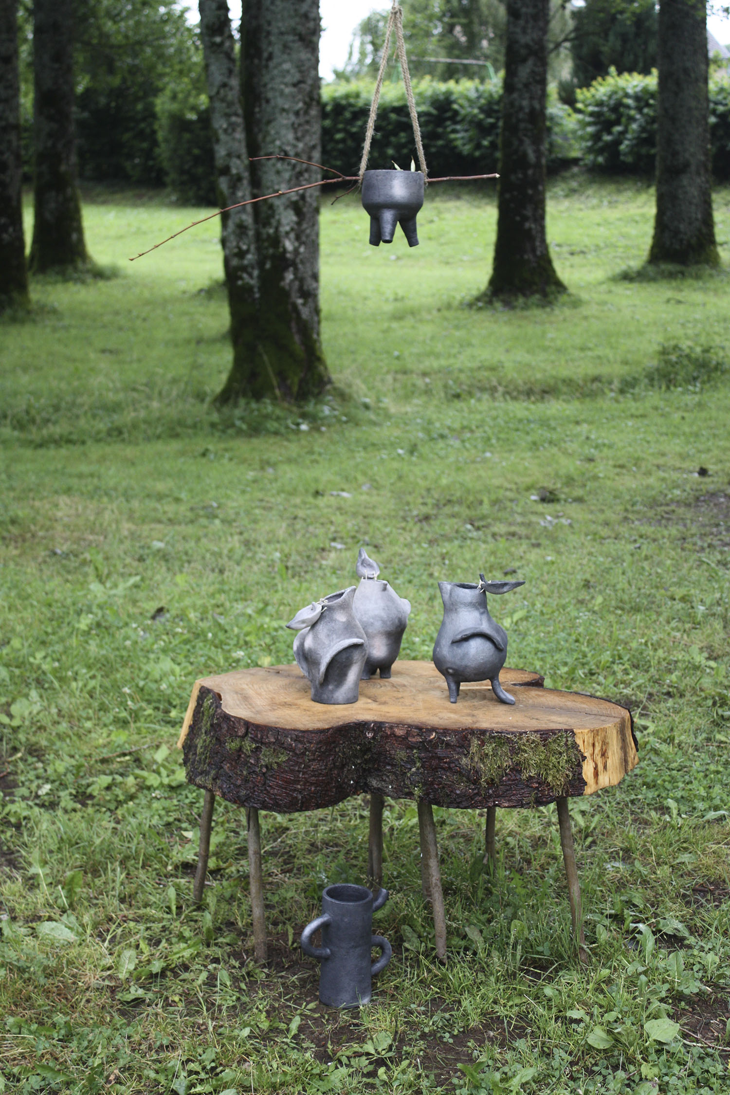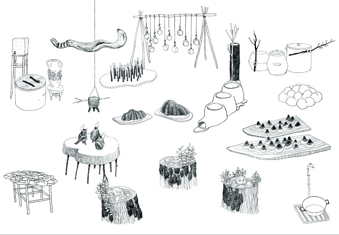 En collaboration avec Carolina Fonseca, service à tisane, bois, branches de tilleul, contenants en grès cuit